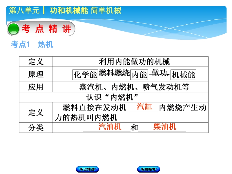 2018届中考物理复习《第八单元 功和机械能 简单机械 第19课时 内能的利用》ppt课件+word专项训练.rar