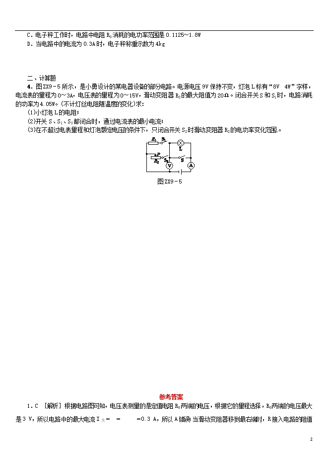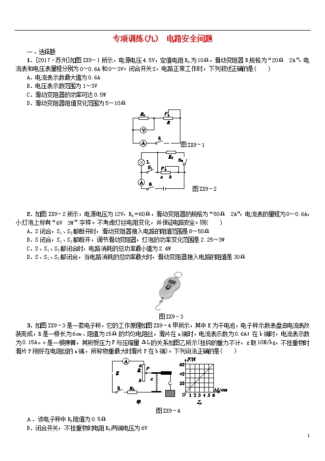2018届中考物理复习《专题9 电路安全问题》ppt课件+word专项训练