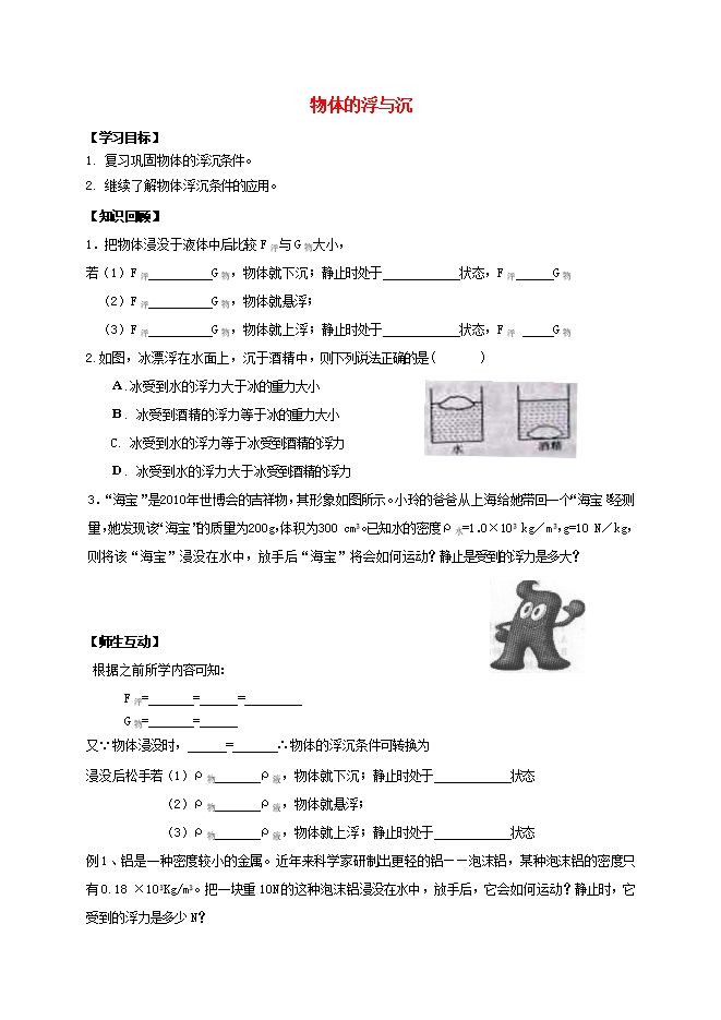 苏科版八年级物理下册《10.5物体的浮与沉》ppt课件+word学案+练习