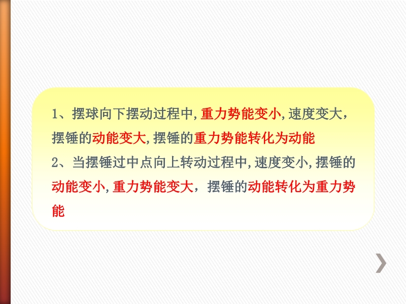 【内容简介】人教版八年级物理下册《11.4机械能及其转化》ppt课件共有20张幻灯片,通过单摆、滚摆等生活实例学习动能和势能的转化,通过弹簧和弓箭等研究动能和弹性势能的转化。