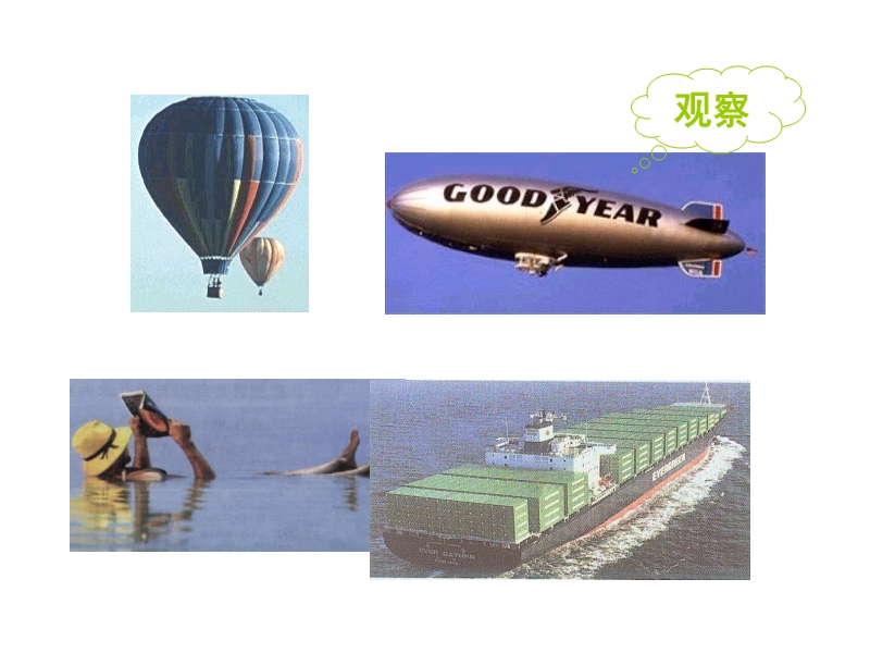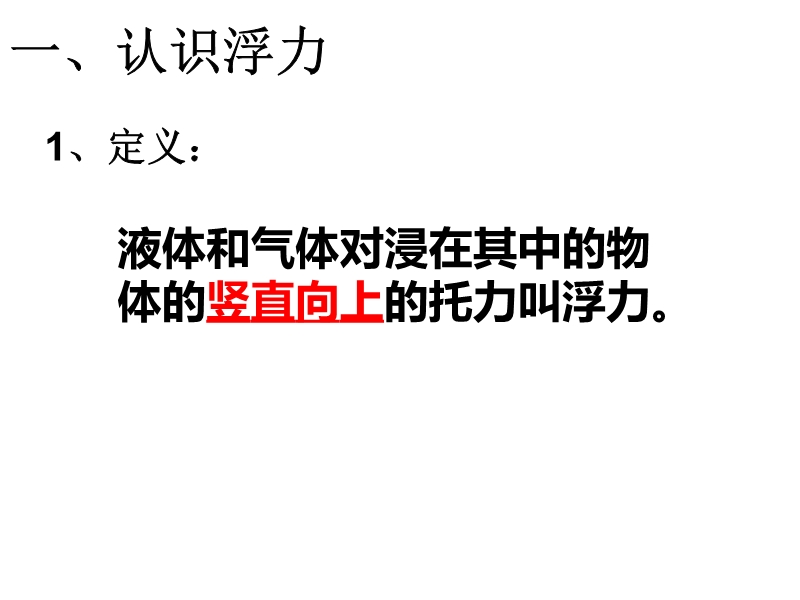【内容简介】沪科版《9.1认识浮力》ppt课件,共有31张幻灯片。课件引导学生认识了液体和气体对浸在其中的物体都有浮力,并且认识了浮力的方向,课件还引导学生探究了液体的浮力和空气的浮力,讨论了浮力产生的原因等。