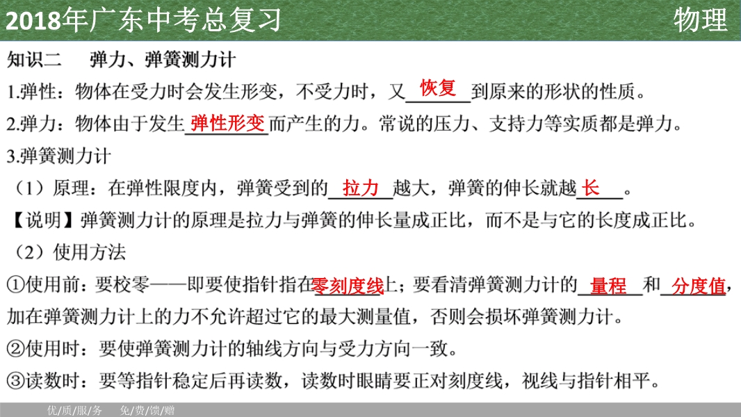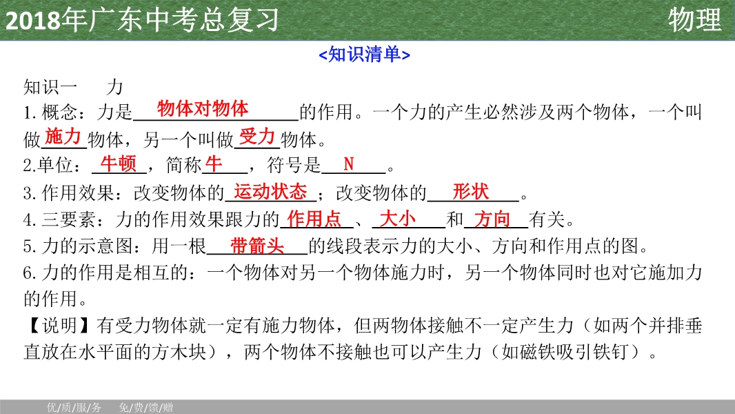 广东省佛山市2018中考物理复习课件:《第七章 力》PPT课件