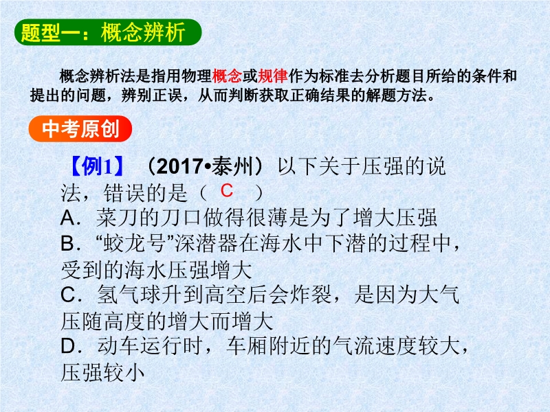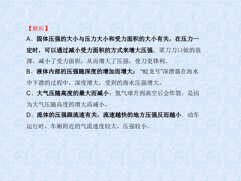 - 1682020年四川达州中考物理二轮题型突破课件:选择题02.类型二 压强与浮力